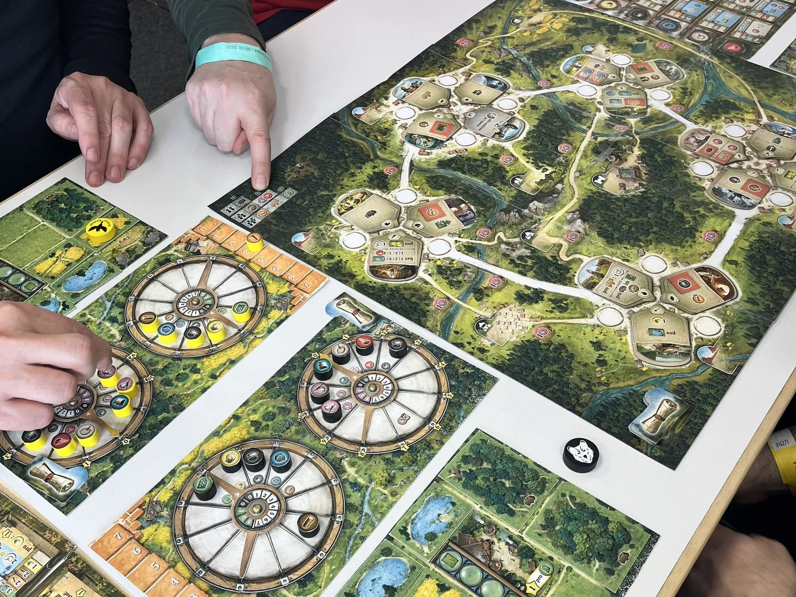 Two resource wheels on your tableau help you keep track of your resources and production.