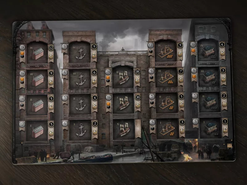 You must develop, build, and establish your industries and network so that you can capitalize demand for iron, coal and cotton. The game is played over two halves: the canal phase and the rail phase. To win the game, score the most victory points (VPs), which are counted at the end of each half. VPs are gained from your canals, rails, and established (flipped) industry tiles.