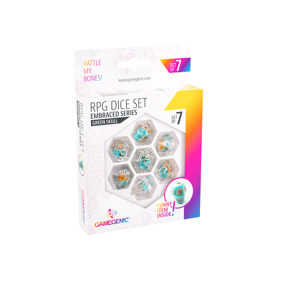 DICE Embraced Green Skull RPG Dice Set 7pcs