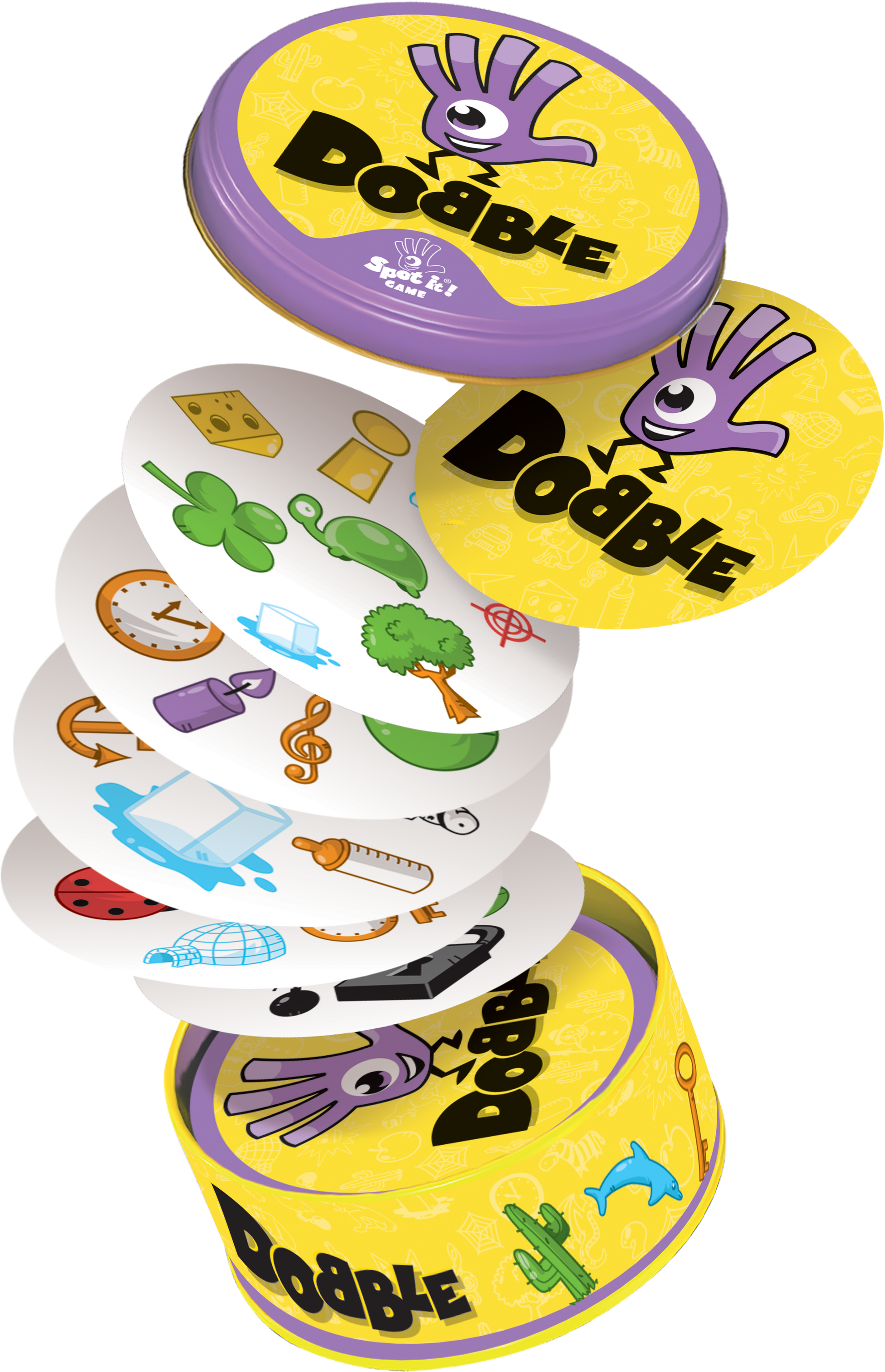 Dobble is a super fun card game for all ages. In this fast-paced game, players simultaneously try to find the one matching symbol between two different cards. Speed, observation, and reflexes are key to winning!