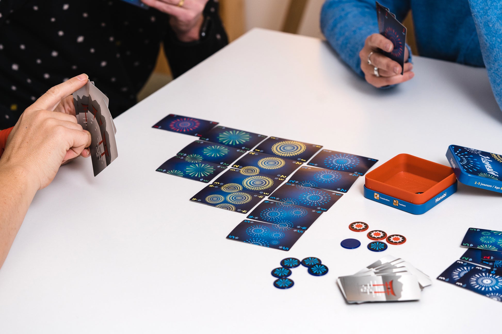 Hanabi — named for the Japanese word for "fireworks" — is a co-operative game in which players try to create the perfect fireworks show by placing the cards on the table in the right order.