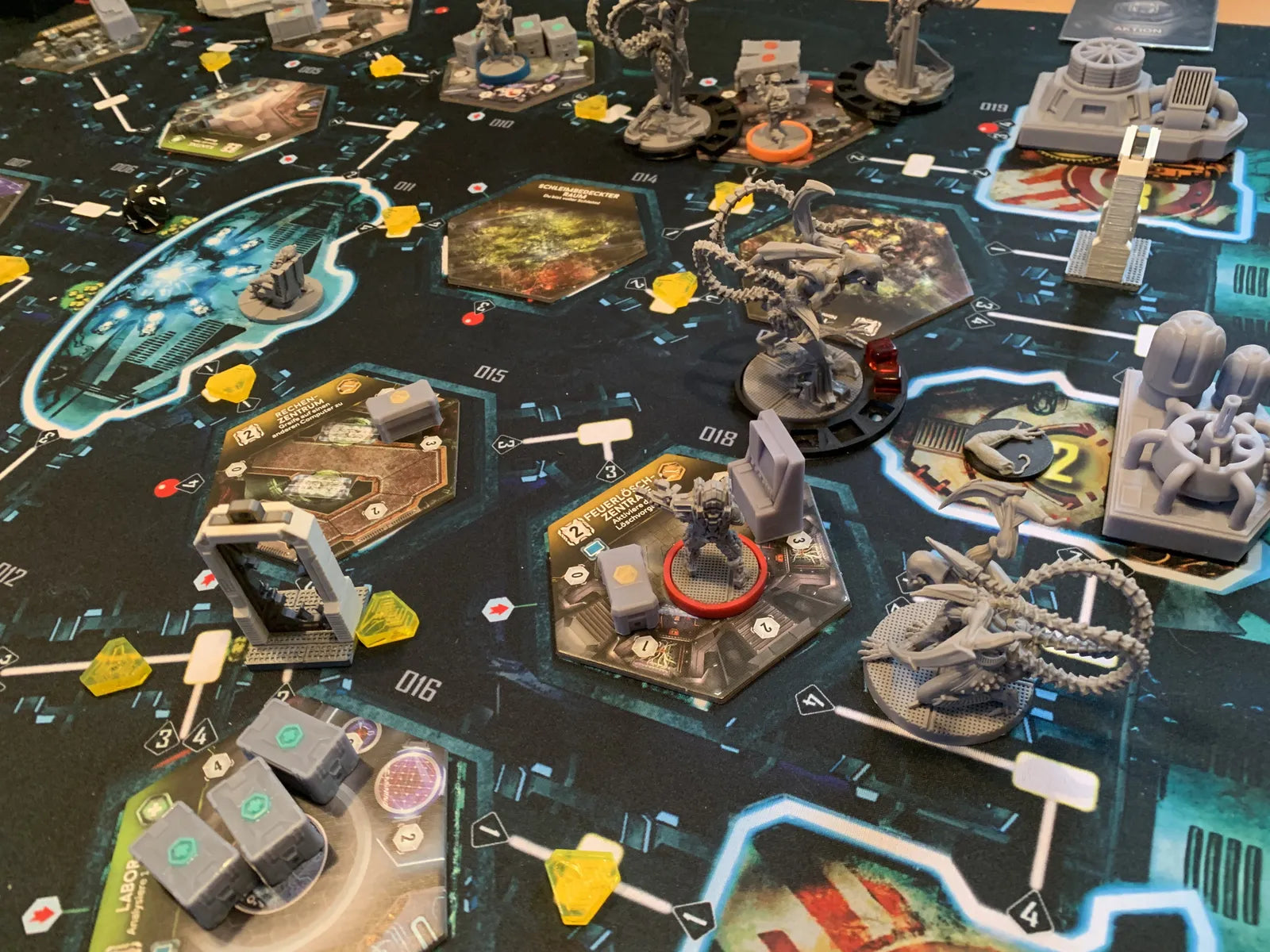Nemesis is a cooperation game combined with bluffing, backstabbing, and other elements of a science-fiction survival horror adventure.