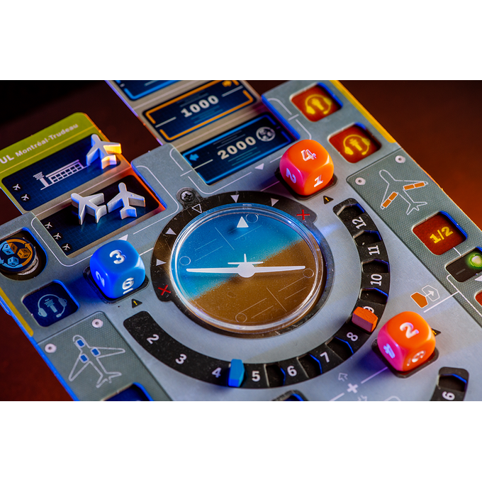 To land your plane, you need to silently assign your dice to the correct spaces in your cockpit to balance the axis of your plane, control its speed, deploy the flaps, extend the landing gear, contact the control tower to clear your path, and even have a little coffee to improve your concentration enough to change the value of your dice.